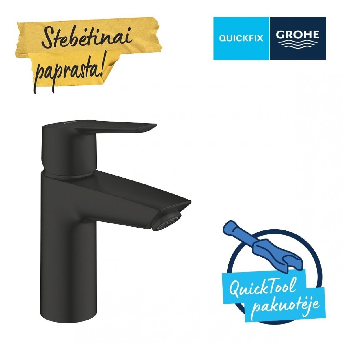 GROHE QuickFix leis patiems maišytuvą sumontuoti stebėtinai paprastai – net jeigu ir neturite jokios montavimo patirties! Pakuotėje rasite viską, ko reikia montavimui, ir pasitelkdami QuickTool, QuickGuide ir QuickVideo, maišytuvą sumontuosite be rūpesčių.