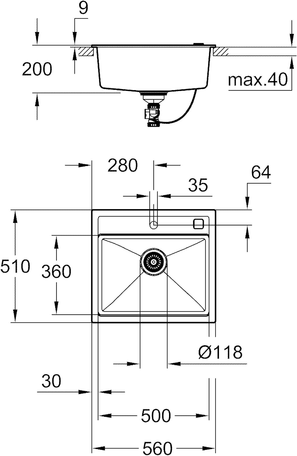 Modernaus dizaino, montuojama iš viršaus Grohe Composite plautuvė K700 granitinė plautuvė su GROHE FastFixation montavimo sistema, kuri padės lengvai ir greitai sumontuoti plautuvę.