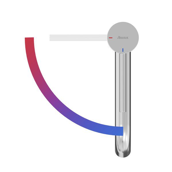 Maišytuvo svirtis nesisuka į dešinę, o prasideda vidurinėje padėtyje, iš kurios teka tik šaltas vanduo.