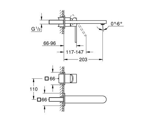 Plus L 2-jų dalių praustuvo maišytuvas iš sienos, snapelis 203 mm, chromas (reikalinga potinkinė dalis )