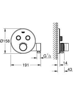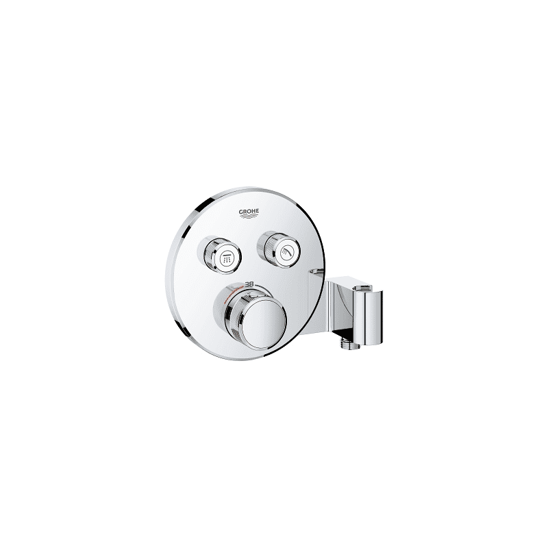 Grohe Grohtherm SmartControl potinkinis termostatinis maišytuvas, chromo spalvos su dviejų krypčių išbėgimu ir dušo laikikliu. Maišytuvo paviršius padengtas chromu ir yra itin lengvai prižiūrimas. SmartControl mygtuku galima pasirinkti arba įprastinę vandens tėkmę, arba EcoJoy kuri leis jums sutaupyti iki 40 procentų vandens, neprarandant maudymosi komforto. Termostatinis kartridžas neleis nusiplikyti odos, jei prausiantis įvyks staigus temperatūros šuolis. Saugos užraktas sustabdo temperatūros kilimą ties 40 laipsnių. B išėjimo vandens pratekėjimo greitis yra 24 litrai per minutę, rankinio dušelio 12 litrų per minutę. Būtina papildomai įsigyti Grohe Rapid SmartBox potinkinę dėžutę (35600000)