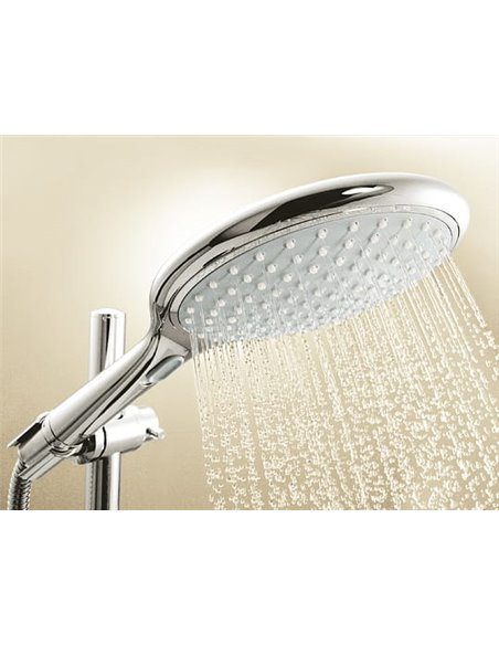GROHE Rainshower solo 150 (27272000)- Tai 150mm skersmens dušo galvutė. Ji turi du vandens purškimo tipus: Lietaus efekto, bei eko-rėžimą. Ši dušo galvutė yra padengta specialiu Grohe chromu, kuris išliks blizgus ir nenublukęs itin ilgai.