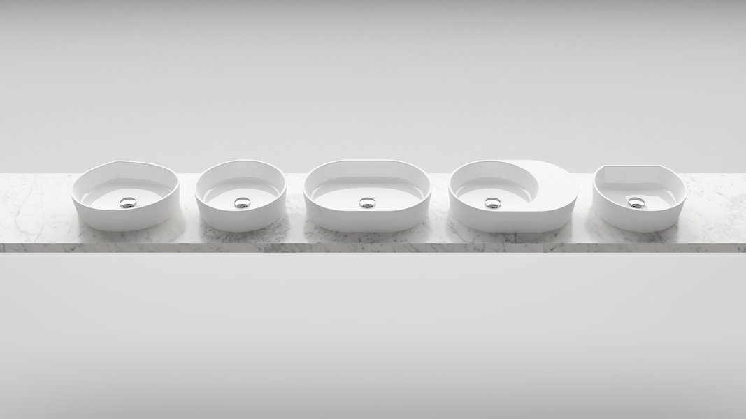 Iš lieto marmuro pagamintas ir paprastų geometrinių formų įkvėptas praustuvas. Idealiai atkartoja kitų stačiakampių vonios kambario elementų (plytelių, dušo ar baldų) formą. Gali būti montuojamas ant horizontalios plokštės.