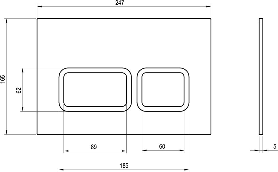 Unitazo valdymo mygtukas Twin skirtas ant sienos pakabinamam unitazui (su montavimo moduliu sienoje). Metalinio mygtuko mechanizmas yra integruotas į sieną, todėl į išorę išsikiša tik minimaliai. Matmenys (PxA): 247 x 165 mm., metalinis .