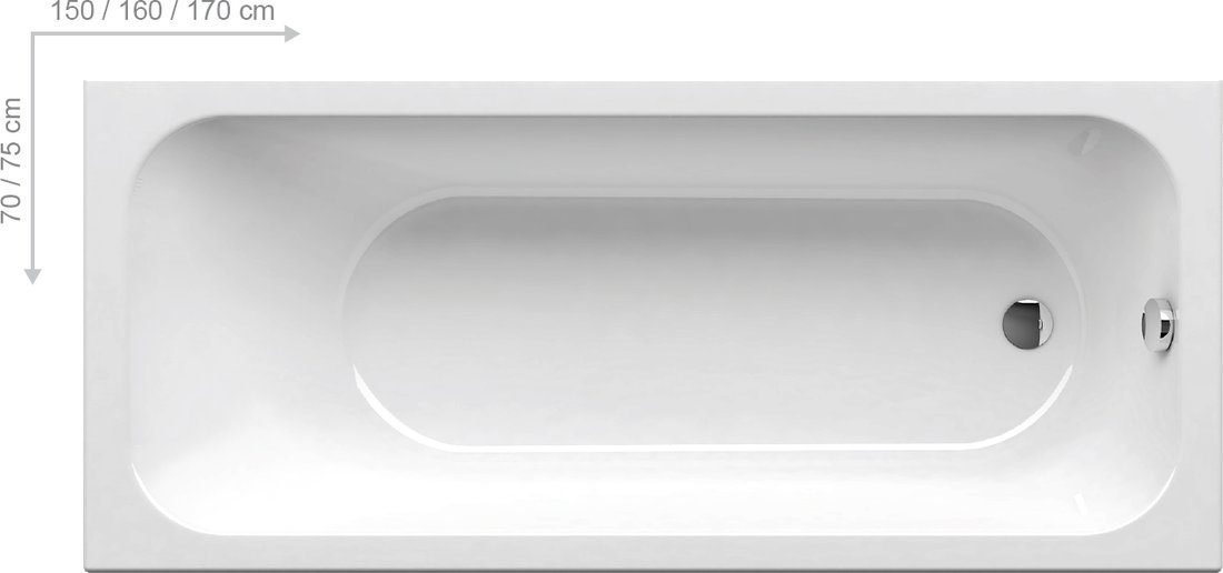 Akrilinė ovali vonia su plonu viršutiniu kraštu, 170 x 75. Aksesuarai: atrama, vonių nutekamasis komplektas (įsigyjama atskirai)