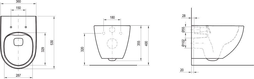 Unitazo išorėje taip pat nėra sunkiai pasiekiamų vietų, o tai sumažina nešvarumų ir bakterijų nusėdimo galimybę. Taip pat, tualeto pakabinimo sistema palengvina grindų valymą po juo.